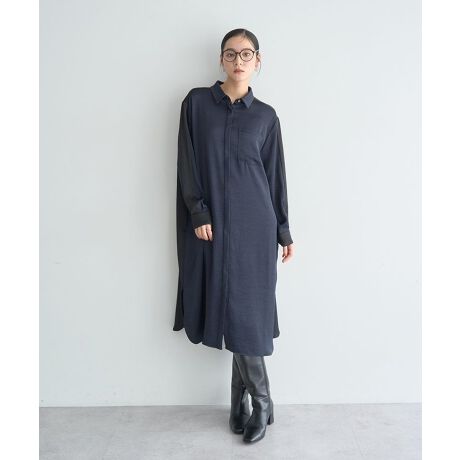 ヴィンテージライクな程よい厚地のサテン生地がこなれ感のある雰囲気のシャツワンピース。