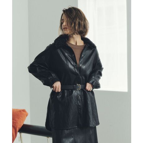さらりとしたしなやかなフェイクレザーで仕立てたシャツジャケット。
