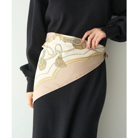 クラシカルなタッセル柄が上品に映えるプリントスカーフ。高級感のあるカラーリングでスタイリングにお洒落なアクセントをプラスします。程よいサイズ感のスクエア型で首元や肩周り、ヘアアクセサリーとして使い勝手も良く、飽きのこないデザインも魅力のポイント。1枚持っているだけで重宝する今季おすすめのアイテムです。※モデル着用画像は、光の当たり具合で色味が違って見える場合がございます。※お使いのモニター環境によって商品の色味が違って見える場合がございます。