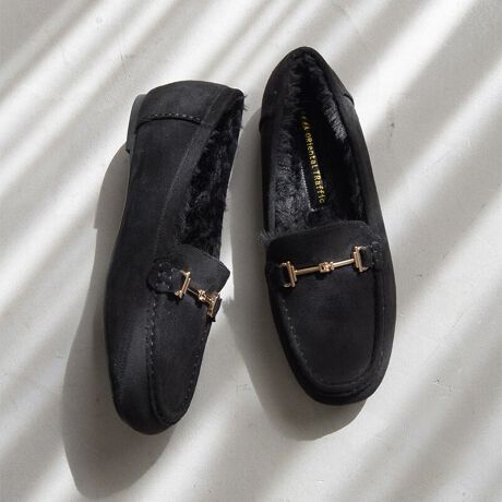 つま先まであったか 防寒 パンプス【25秋冬新作】ビットモチーフ付きファーモカシン/52318