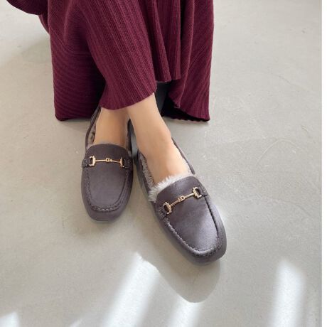 つま先まであったか 防寒 パンプス【25秋冬新作】ビットモチーフ付きファーモカシン/52318