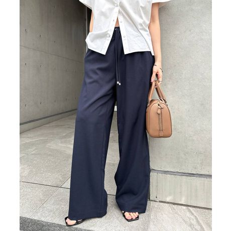 落ち感がきれいなとろみ素材のイージーパンツ。