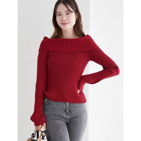 リブオフショルニット