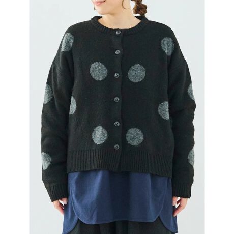 [型番:25410687923]存在感のあるドット柄のデザインが大人びた印象を与えるカーディガン。厚めの素材を使用しており、暖かい着心地を実現します。様々なスタイリングに取り入れやすいクルーネックのデザインが魅力的。シャツやブラウスとレイヤードしたコーディネートがおすすめです。Hare no hi/ハレノヒ