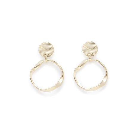 凹凸のあるラウンドプレートと歪なフォルムのフープの組み合わせがモードな印象で、コーディネートをエッジィに引き立てます。