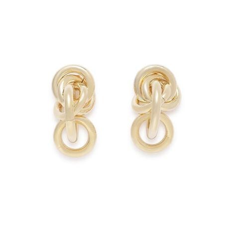 サイズ違いのリングモチーフを重ねた、モダンなフープメタルピアス。