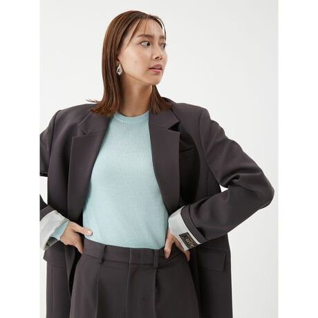 ハンサムなノッチドラペルで、シルエットはボクシーな印象。肩パット入りなので、トレンド感もしっかりアピールできて、羽織るだけでサマになります。