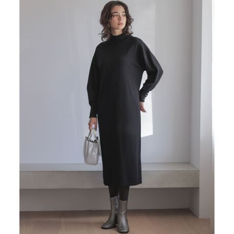 ■デザイン・ハイネックで身体のラインを拾い過ぎないナローストレートシルエットのニットワンピースは大人っぽく、1枚あれば大活躍間違いなしの1枚です。・センターフロントとセンターバックのアウトシームがアクセント。後ろ肩の切り替えもデザインポイントです。・袖口に増やし目でポリュームを出してシンプルなデザインの中に華やかさを出しました。