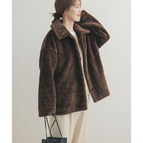 大きめの衿と丸みのあるシルエットが印象的な、大人のためのボアコート。