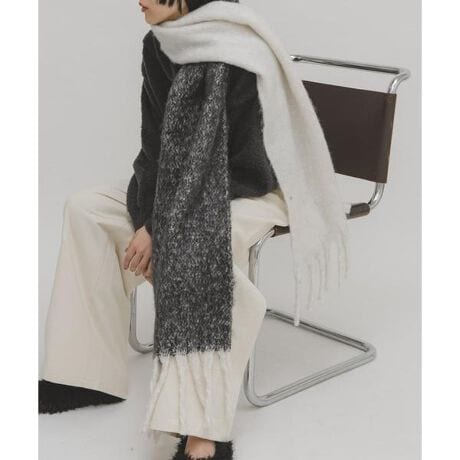 バイカラーに仕上げたブークレストールが登場。メランジと淡色のコンビになっており、巻くとカラーの表情の変化を楽しめます。さらっと首に巻いたり肩にかけたり、ひざ掛けとしても活躍します。