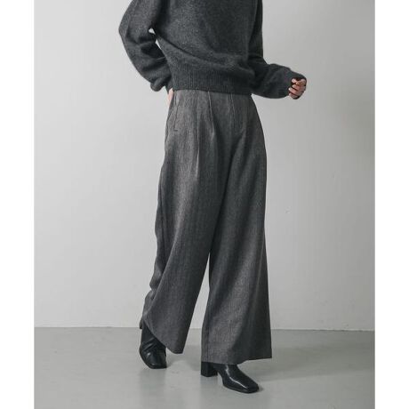 【スタイルアップも叶う。ヘリンボーンワイドパンツ】