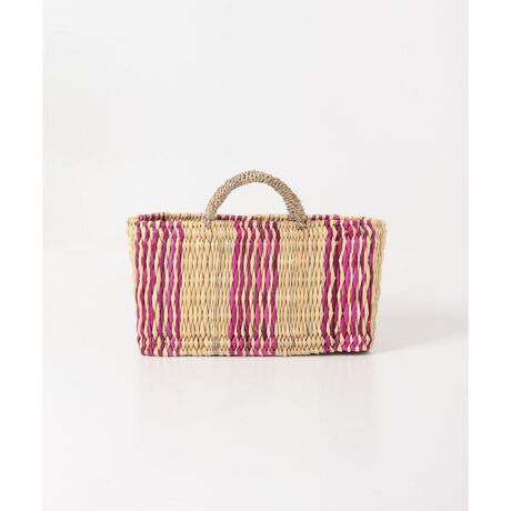 ストロー状の水草で編んだ、柄入り横長タイプのかごバッグ。