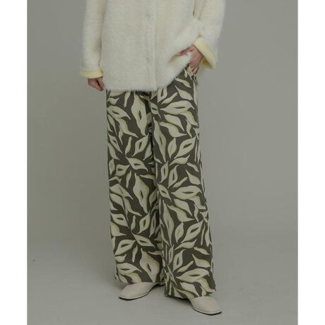 ボタニカルモチーフのニュアンスプリント柄が目を惹く、シンプルなトップスに合わせるだけでこなれ感が出る大人のプリントイージーパンツ。