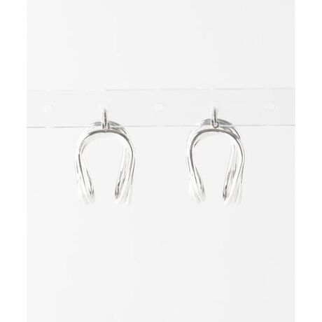 華奢な3本線で描かれたカーブラインピアスは軽やかさを感じさせる抜け感と360度どこから見ても立体感のあるデザインになっております。カチッと留めるワンタッチタイプのピアスなのでキャッチを無くす心配もなくストレスフリーに着用が可能です。ピアスポストはヴィンテージ風の山型にカーブしたポストを採用しているので高見え効果も◎丁度いいサイズ感とシンプルなデザインで幅広いジャンルのコーデにマッチする上品なピアスとなっております。