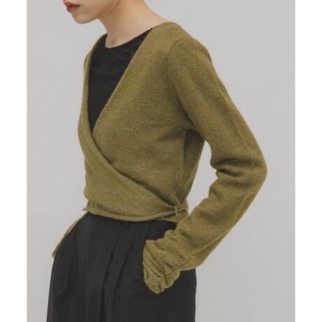 程よく温かみのあるモヘアライクな糸を使用したニット。カシュクールデザインになっており、いつもの着こなしに新鮮さをプラスしてくれます。深Vネックは、レースやシアートップス、プリントTEEと好相性。長めの紐はぐるりと腰に巻いていただくのがおすすめです。