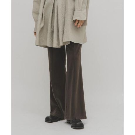 微起毛なふわっとした優しい肌触りが魅力のフレアパンツ。ウエストはオールゴム仕様になっており、リラクシーな穿き心地が叶います。そのまま1枚着はもちろん、ミニワンピースや丈が長めのトップスのレイヤードアイテムとしても活躍します。