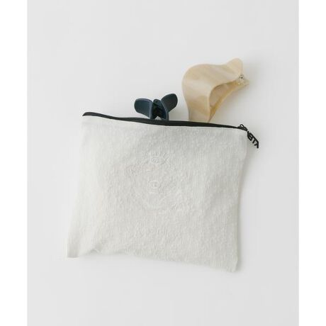 SMELLYの人気キャラクター、シロクマのメリーちゃんの刺繍をあしらったフラットポーチ。