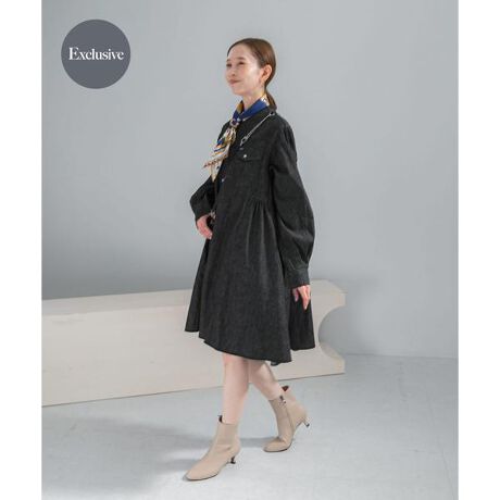 『別注』Wrangler×ROSSOのトレンドライクなミニ丈デニムワンピース。ミニ丈ですがデニム地で甘くなりすぎず、ウエスタン調のステッチデザインなど大人カジュアルな一着に仕上げました。胸下サイドに細かなギャザーを施すことで、女性らしい立体感のあるシルエットを実現。ゴアブーツやロングブーツとのバランスの取れた着こなしがお勧めです。ワンピースとしてはもちろん、ボタンを開けてライトアウターとしてざっくり羽織っても着映える一着に◎