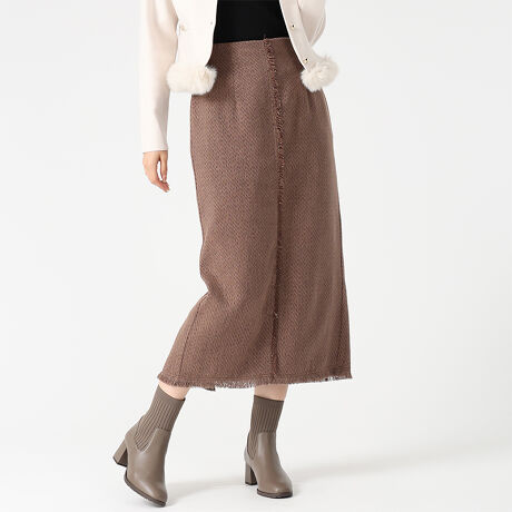 2025秋冬新作 ラメツイードフリンジタイトスカート