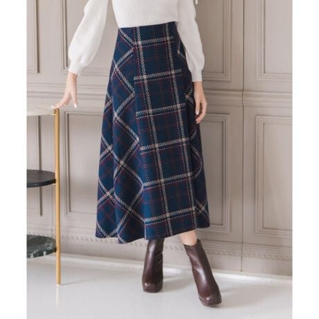 存在感チェックで一気に華やか美シルエット。25秋冬新作 ロービングチェックAラインミディスカート
