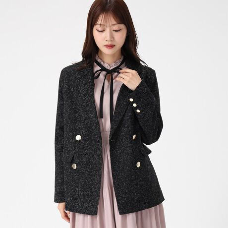 【WEB限定】-2025 Autumn&Winter Item-ツイード柄が季節を感じさせるダブルジャケット。■designビッグシルエットで、ダブルボタンがカジュアルさをプラスします。■detail上品さとトレンド感を兼ね備えたマット素材の金ボタンがカジュアルからフォーマルまで幅広く着まわせます。■materialブラックには白い紡毛糸ベージュにはブラックの紡毛糸ネイビーには同色のネイビーの紡毛糸■styleミニスカートやマーメイドスカート、ストレートパンツなどスッキリしたシルエットのボトムス合わせがおすすめです。■fabric透け感[無し] 裏地[すべて有り]伸縮性[無し]生地の厚さ[普通]