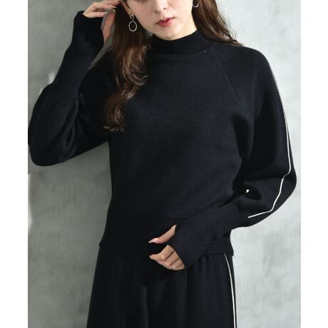 【CLOCHE】配色ラインジャガードニットプルオーバー