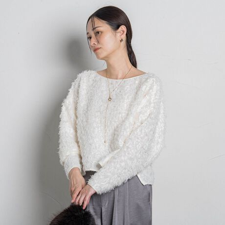 ほのかに透け感があり、華やかなフェザージャガードを