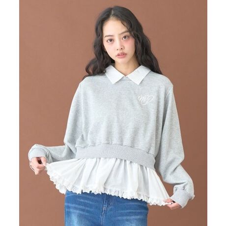 取り外し可能な布帛襟とふんわりと柔らかな裏毛素材で仕立てた、着心地抜群のスウェットトレーナーです。