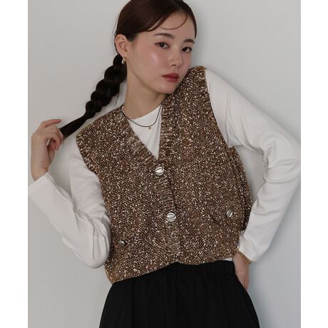 ニュアンスボタンメランジニットベスト