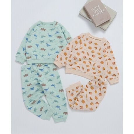 apres les cours(アプレレクール)のパジャマ「パン&恐竜モチーフキルトパジャマ」は、おうち時間が楽しく快適になるような着心地とデザイン。お気に入りデザインを選んで、おやすみタイムを過ごしましょう*