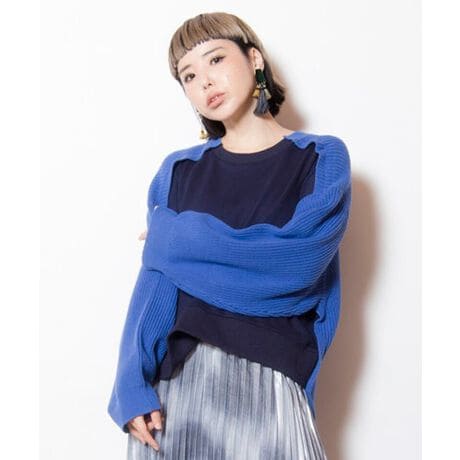 カジュアルなラグラン風のスリーブを、ニットで作った大人ストリートなプルオーバー。