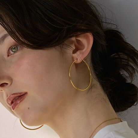 スリムなラインで仕上げた直径約5cmの程よい存在感が、お顔周りをさりげなく引き立て、コーディネートに華やかさをプラス。