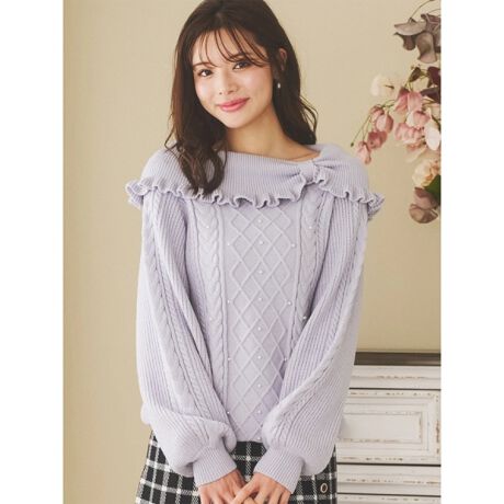 オフショルリボンケーブルプルオーバー