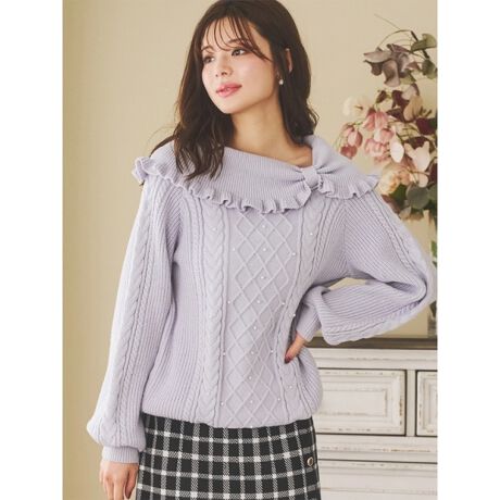 [型番:25550719974]リボンモチーフのオフショルデザインが女性らしさを高めるプルオーバー。フロントにはパール調を施しており、煌びやかな輝きを放ちます。凹凸のあるケーブル編みのデザインが魅力的。休日のお出かけやタウンユースに大活躍してくれるアイテムです。モデル(サックス着用)身長:165cmMサイズ着用モデル(ベージュ着用)身長:167cmMサイズ着用 モデル(オフホワイト着用)身長:160cmMサイズ着用