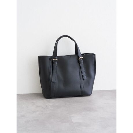 [型番:25570357609]滑らかなレザー調の素材が大人びた風合いを演出するバッグ。付属のショルダーストラップを付ければ、ななめ掛けとしてもお使いいただけます。内側は複数のコンパートメントに分かれているのも魅力。500mlのペットボトルが入るサイズ感で、持ち運びしやすいアイテムです。