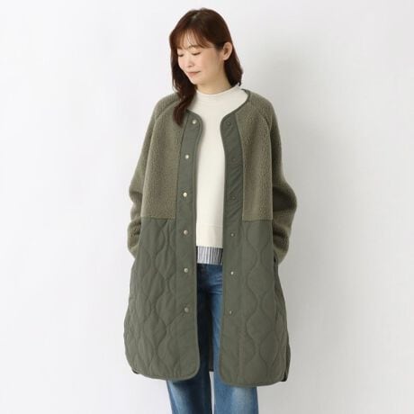 ノーカラーデザインで、顔回りはすっきりに見せながら、