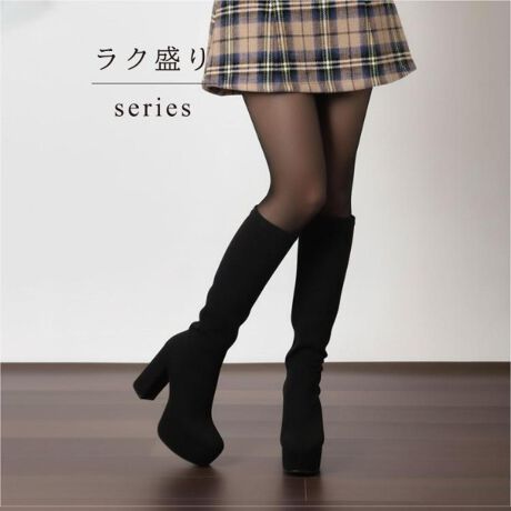 【ラク盛り/ロングブーツ】リピーター続出/脚長美脚 厚底ヒールロングブーツ‐スリムフィット