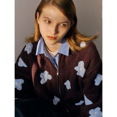 オリジナルで描き起こした花柄を全体にあしらったニットカーディガン。