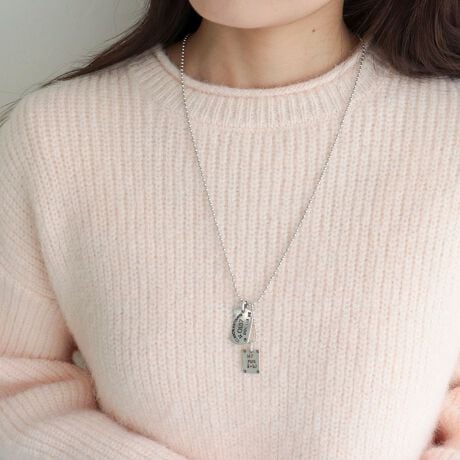・ドッグタグ風の2種類のチャームとボールチェーンを組み合わせたロングネックレス