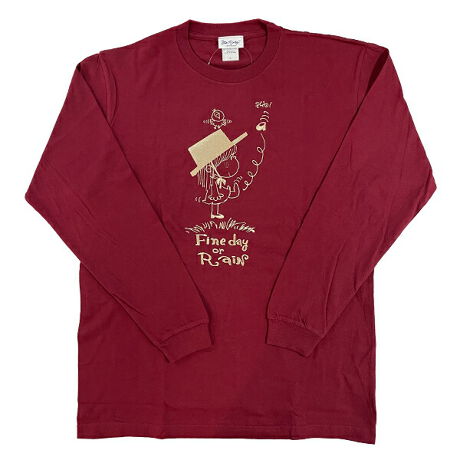 水森亜土 刺繍ロングスリーブTシャツ オンナノコ バーガンディー 長袖 アパレル