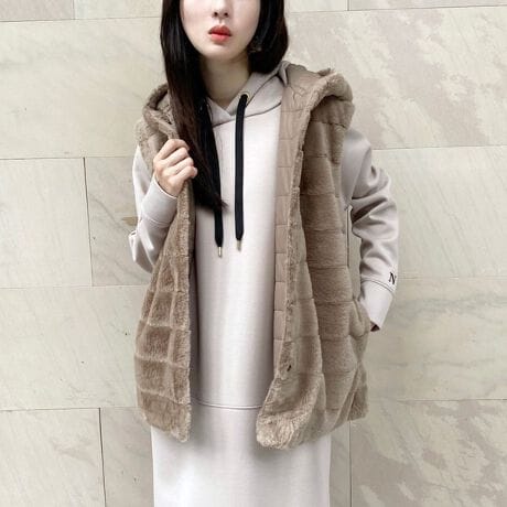 スカートからパンツまで幅広くバランスを取りやすい丈感は、シンプルなワンピースやシアーTEEなどにファーベストを羽織るだけで、今年らしい秋スタイルに。
