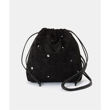 大小ランダム使いの丸型スタッズ配置なのでハードすぎず、こなれた印象になります。ベロア素材で季節感を演出し、その日のスタイリングに合わせてお使いいただけるハンドorショルダーの2WAY仕様です。