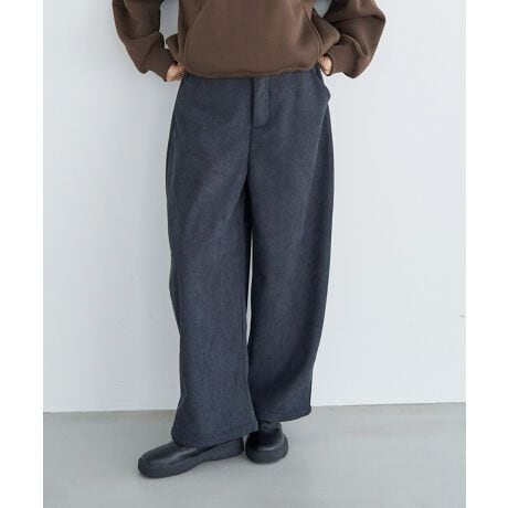美シルエットはそのままに、細畝のコーデュロイ生地に裏起毛加工(ボンディング加工)することで、