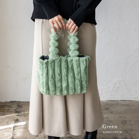 ふわふわのファー素材が、コーデに季節感と華やかさをプラスします。