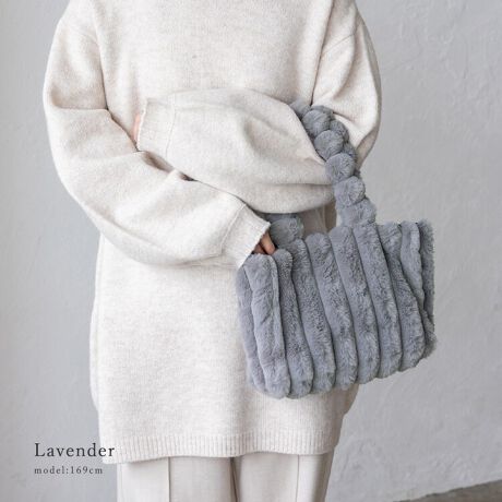 ふわふわのファー素材が、コーデに季節感と華やかさをプラスします。