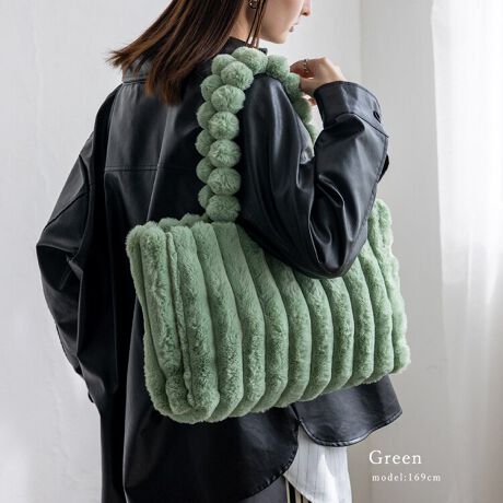 丸みのあるボールハンドルと、上質なフェイクファー素材が印象的なボールハンドル ファートートバッグ。
