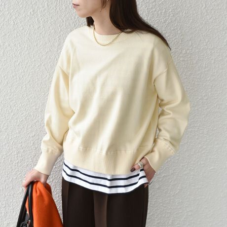 スウェットのような取り入れやすさがありつつ、ニット素材ならではの上品な雰囲気を兼ね備えたデザイン。