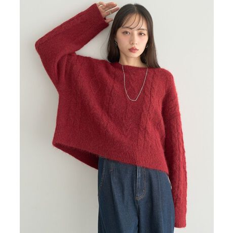 モヘヤタッチでふっくらと暖かいシーズナルなニットプルオーバー。雰囲気あるケーブル模様が優しくナチュラルな印象をプラスします。ラウンドネックにドロップしたショルダーとこなれ感ある短丈フォルムがトレンド感たっぷりに演出。カジュアルなデニムからフェミニンなスカートまで幅広く合わせていただけるおすすめのアイテムです。透け感[なし]