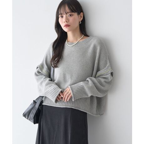 コットン、アクリル混合のライトなニット地で仕立てたニットプルオーバー。凹凸のあるナチュラルな編地がカジュアルなスタイリングに最適なデザインです、ラインを加えた切り替え袖や、センターバックの配色ステッチもおしゃれなアクセント。毛玉になりにくいイージーケア素材やサイズ違いで長さを選べるのもポイントです。