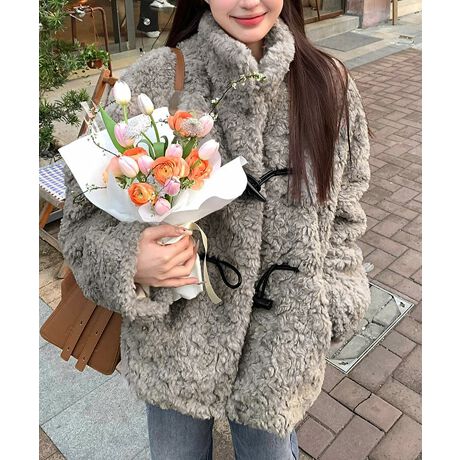 ふわふわのフェイクファー素材で仕上げた、暖かなボアジャケット。